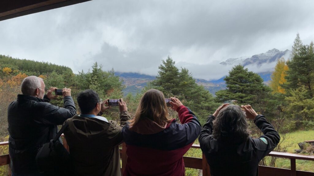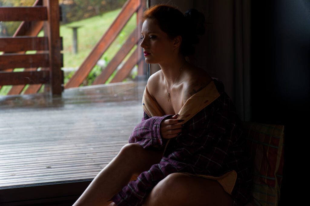 Après le trajet en commun depuis Givors et le repas du vendredi midi, les quatre photographes invités ont pu faire mieux connaissance avec Paloma lors d’une première séance de shooting autour du chalet.